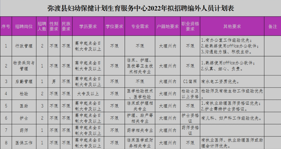 大理州彌渡縣婦幼保健計劃生育服務中心2022年公開招聘編外人員13人