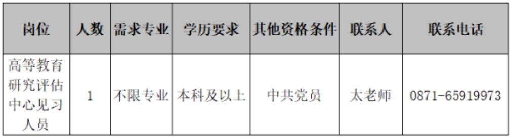 云南中醫(yī)藥大學(xué)高等教育研究評(píng)估中心2022年見(jiàn)習(xí)崗位招聘公告